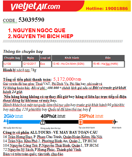 Cách nhận vé máy bay của đại lý Vietnam Airlines Quận 12 khi mua qua điện thoại.